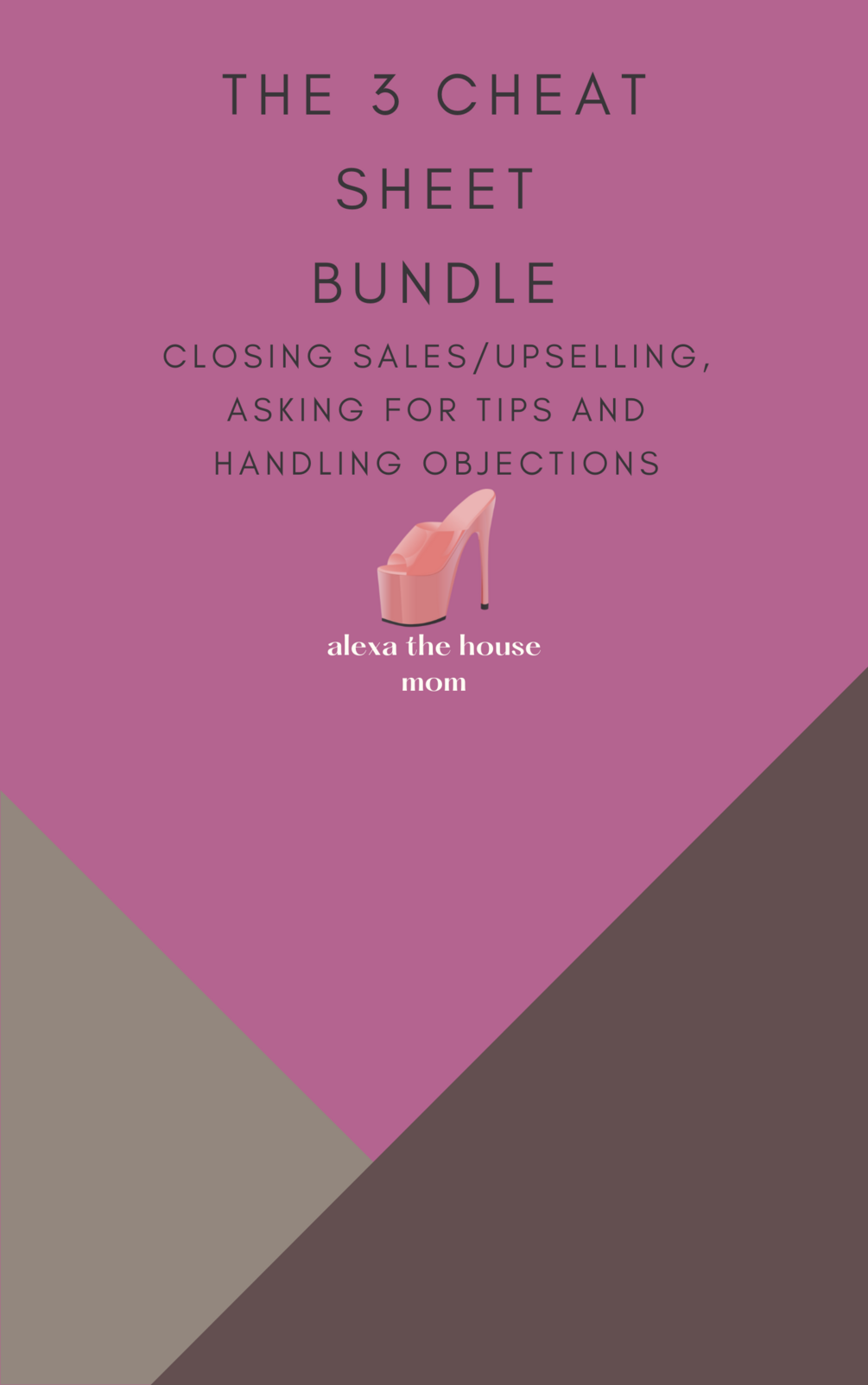 The Objection Handling Cheat Sheet will give you 40 ways to handle the "Maybe later" and "I'm just here for a drink" nonsense you might keep hearing throughout your shift. There are so many (common and uncommon) objections handled in this cheat sheet as well as a formula for how I create my own objection handling phrases, so you can customize your own to suit your comfort level and dancer persona.